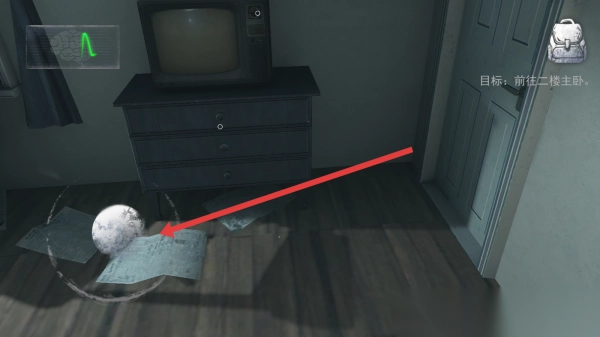 2、探索房间,按箭头指引,拾取地面纸团(可能含线索),留意环境细节,推进剧情。