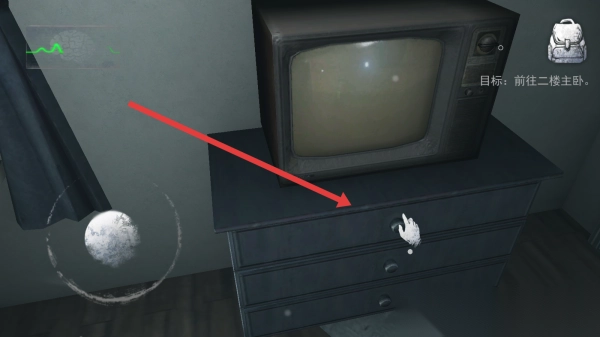 3、点击打开互动电视旁的抽屉,从中寻找道具(像钥匙、文档之类),这些道具可用来开启二楼主卧的门或者解开谜题,达成阶段目标,从而更深入地体验恐怖冒险。