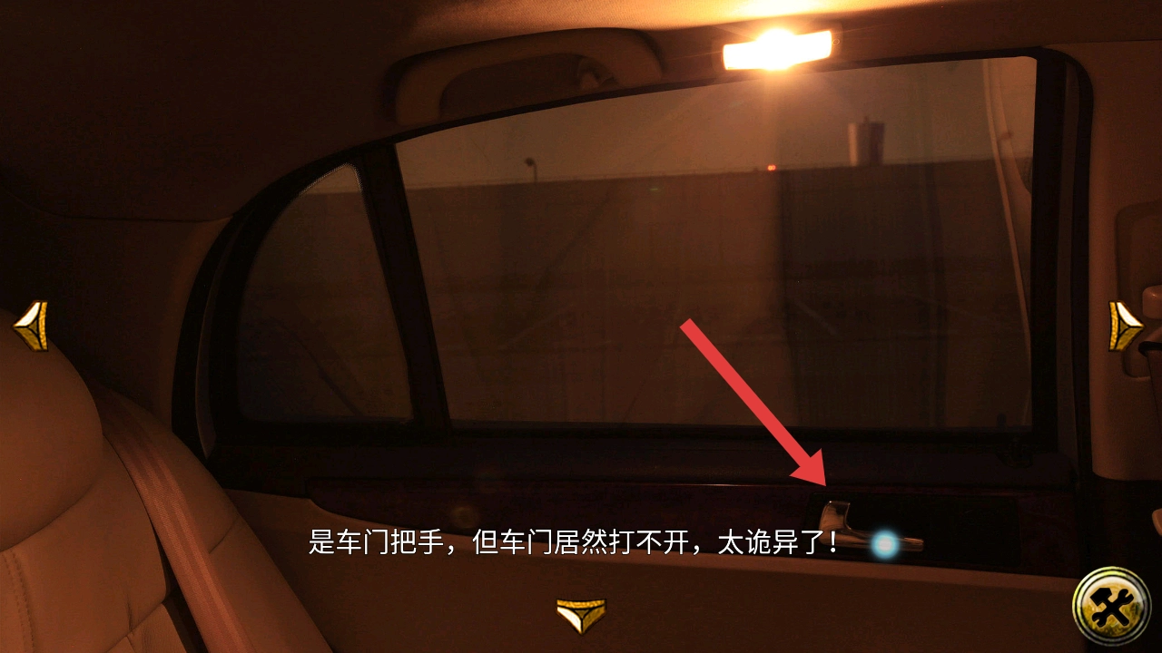 1. 当进入车内场景,点击查看后座区域时,会触发文字提示:“外面好黑,什么都看不见,好害怕”。