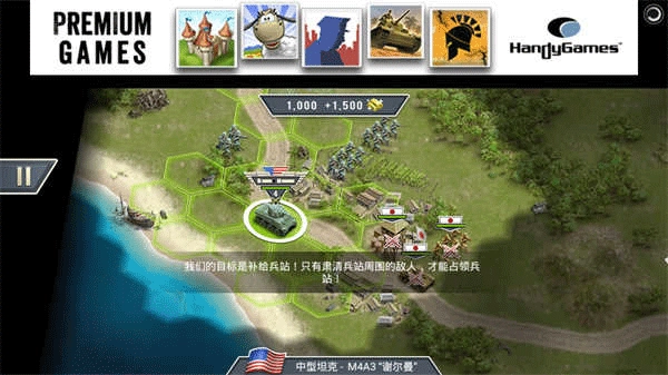 2、游戏中,你将担任盟军指挥官,组织海陆空各式作战单元抵抗轴心国同盟(德国、日本、意大利等等),并将其击败。