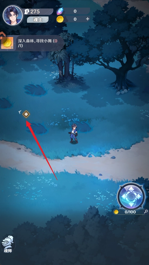 3、进入游戏我们需要跟着指引去寻找小舞