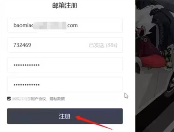 3、接着输入邮箱、验证码、密码等信息,然后点击下面的注册即可。