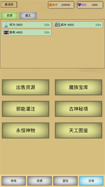 魔王点击修炼系统手游官方下载,这是一款超有趣的文字修仙游戏。它的玩法极为简单,仅需手指微操,单手就能搞定所有操作,简直是佛系玩家的福音。游戏采用经典的像素角色扮演画风,玩法主打放置、挂机,只要挂着就能完成修炼,战胜所有对手。