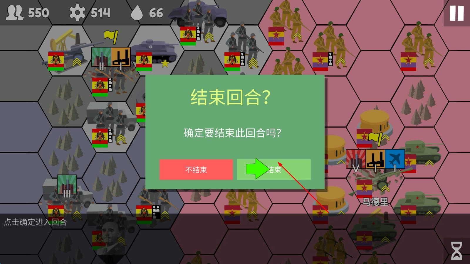 1. 进入游戏后,注意地图上箭头所指之处,那里就是可操作的目标单位。点击该目标单位,会立刻弹出绿色方格,再次点击方格,即可灵活操控部队移动,迈出战略部署的第一步。