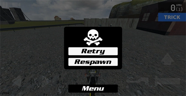 2、游戏操作颇为简单,左侧按钮用于控制方向,右侧的↑按钮能够控制摩托车抬头,下方的两个按钮分别为刹车键与油门键。