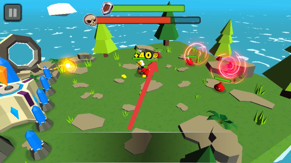 2、在战斗进行时,收集怪物掉落的 +40 金币。积攒这些资源,后续能用来提升角色属性或强化武器,以此增强战斗能力。