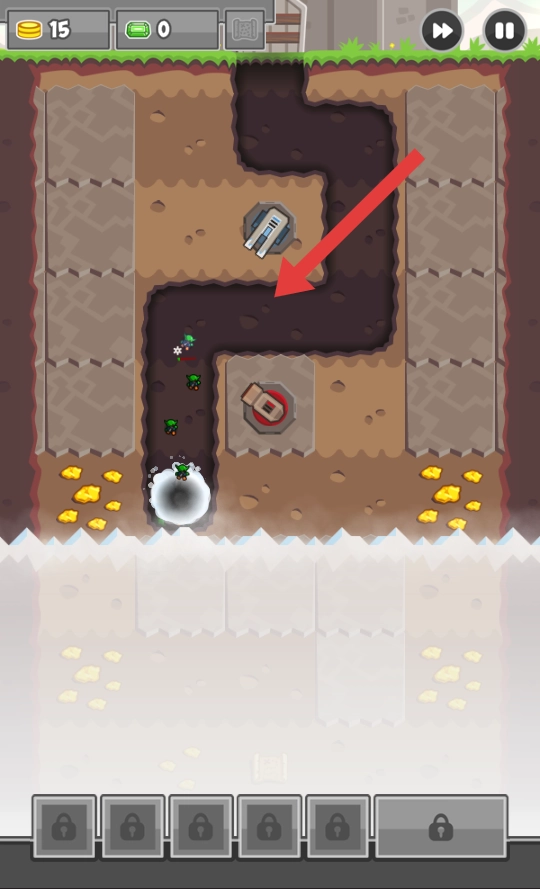 3、密切留意地下路径上敌人的动向,充分利用冰塔的射程优势,提前展开打击。一旦碰到金币,要及时收集,借此建造更多防御塔,全力守护以达成目标。