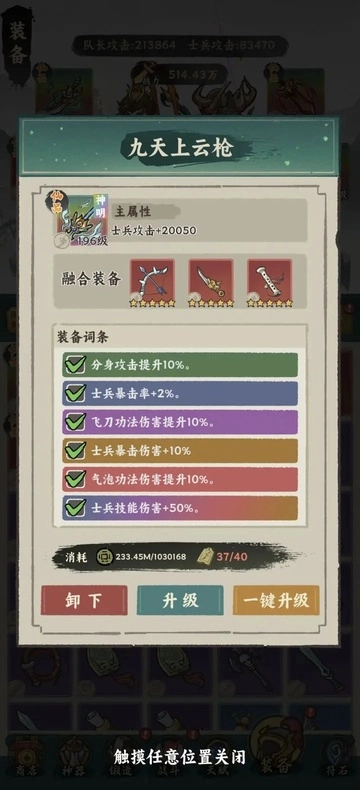 若拥有士兵副武器的仙品,可将回旋镖符石替换为气泡功法。就我个人而言,上述符石与装备的性价比和强度皆是最高的。符石方面,剔骨、刀分身以及夺魂斩是必不可少的,其余两个可依据个人喜好来选择。打狗棒主要用于打出控制效果。