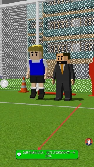1. 和场边的人进行对话,弄清楚【通过试训 - 获得合同】的规则,着手准备参加足球试训。