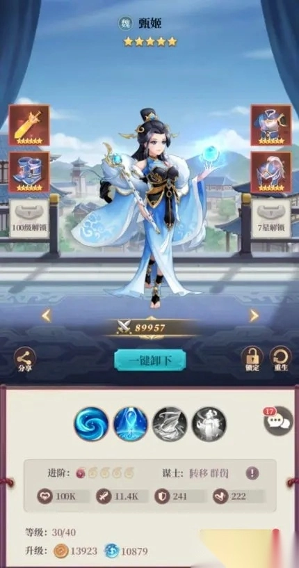 5、具备角色进阶功能,玩家只需使用对应的游戏材料,就能对角色进行进阶操作,进而提升角色的各项属性。