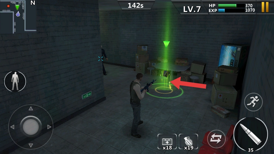 1. 当进入室内战斗场景,首先留意屏幕上方的生命值和经验值面板,优先去熟悉基础操作,通过点击射击按钮,运用枪械对敌人展开攻击。