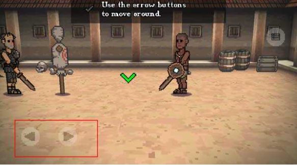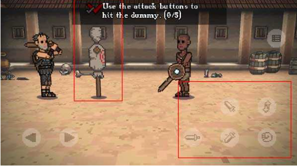 4、接下来便是实际操作,利用剑点击右边的按钮,对木头人发起攻击,攻击结束后,新手教程也就完成了。