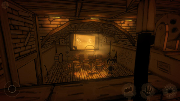 《班迪与墨水机器》是一款把复古动画美学跟心理恐怖绝妙融合的第一人称冒险解谜类游戏。玩家将化身前动画师亨利,在接到一封神秘的邀请函后,重回荒废多年的“乔伊·德鲁动画工作室”。然而,却意外闯入一个被墨水淹没的诡异世界。此地时间仿佛凝固在20世纪30年代的卡通风格里,可原本温馨的动画场景已扭曲成充满压迫感的迷宫,墙壁不断渗出粘稠墨汁,恶魔化的“班迪”以及各种墨水怪物隐匿于阴影之中。玩家只能手持斧头、扳手等简陋工具,在黑白卡通营造的视觉奇观里,探索废弃办公室、阴森录音室和墨水翻涌的地下工厂,通过收集四处散落的录音带、破旧日志和神秘符号,去拼凑出工作室那黑暗的历史。