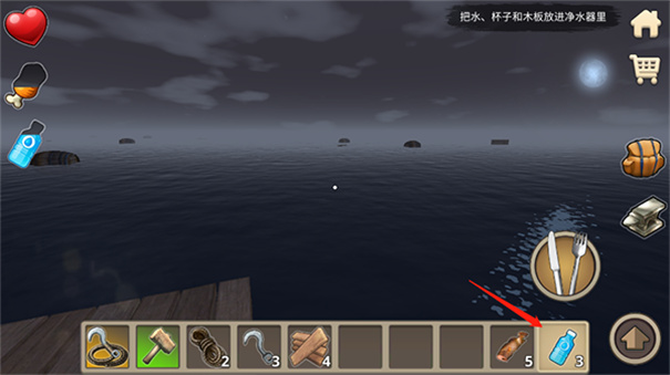 在海上生存,鱼是必不可少的。游戏中的鱼分为生鱼和油炸鱼两类。生鱼可以直接用钓鱼竿钓取,并且能够直接食用,食用后可增加10点饱食度。而油炸鱼的制作需要借助篝火,用2份茅草和1条生鱼,经过1分钟加工就能制成,食用油炸鱼可增加38点饱食度。