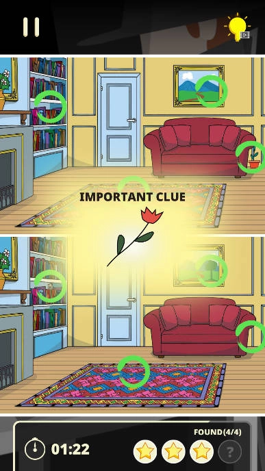 《侦探来找茬》玩法轻松简易,玩家能挑选各异的关卡与挑战模式。丰富多样的谜题,对大家的脑洞与思维形成考验,有时试着转换思路,方可更迅速地通关。