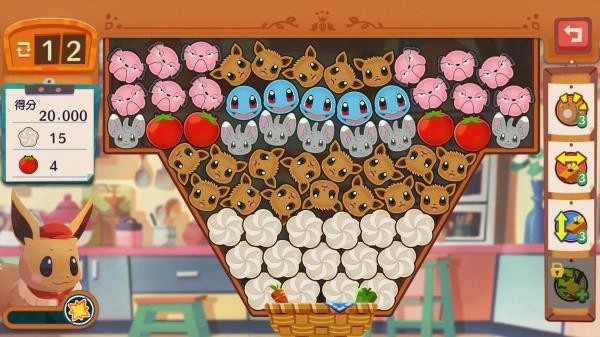 6、每只店员宝可梦都拥有专属技能。比如伊布能够清除周边的特选材料,小火龙则可以消除右侧的部分材料。依据关卡需求,合理搭配不同技能,通关会更加轻松。