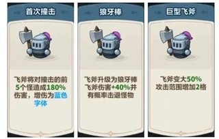 对于骑士而言,建议着重强化首次撞击、狼牙棒以及飞斧这几个技能,以此来扩大控制范围并提升清场效率。