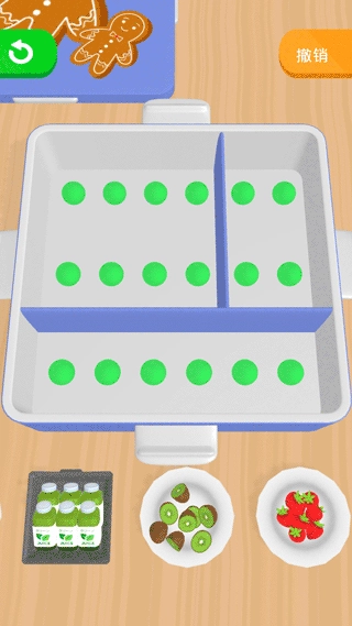 2、游戏画风清新治愈,特别适合有强迫症的玩家来解锁。玩家需有条不紊地整理并摆放所有食物,操作轻松流畅,难度不大,还能挑战多样内容。
