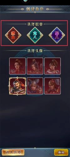 3、开始创建角色,角色需要两步才能创建成功:选择职业、选择头像。