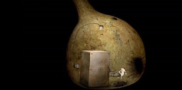 3、点击圆形房的门,进入房间。点击架子上中间大瓶子的盖子,再点击掉到地上的瓶盖。点击左边两个吸水怪中的小怪,小怪会掉下去,在大怪救小怪的时候,迅速点击原大怪鼻子下方的洞,瓶盖就会塞住那个洞。点击房子回到初始位置,然后点击两个怪右边的水泵进行压水操作。进入房子后,点击右边的旋钮,使漏斗改变方向。点击花朵上的猴子,让它蹦到最左边的花上,猴子会摇晃花粉落到锅里,点击锅下方的按钮,火会变大,出现气泡后点击锅右边的闸,水就会流到下面的桶里。这时,敲管子的怪会过来喝水,喝完后会睡着,拿起它掉落的榔头回到上一个场景,点击机器人的头,即可进入下一关。