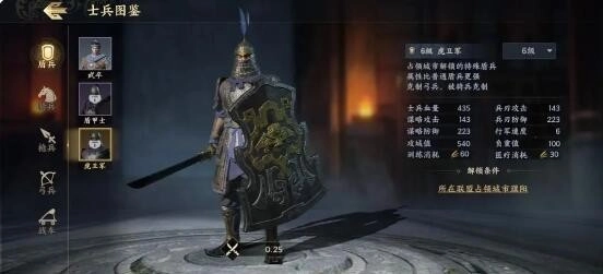 在游戏里,士兵依据兵种可分为盾兵、骑兵、枪兵、弓兵、战车这五个兵种。每个兵种之下,按品质由低到高,依次有普通兵(蓝色)、政令兵(紫色)、城市兵(橙色)这三个类型。不同品质的士兵,其外观与属性会有相应的变化和提升,不过战车不存在城市兵类型。普通兵可通过建筑兵曹来解锁,政令兵借助政令系统解锁,而城市兵除了要通过政令解锁外,还需占领对应的城市才能解锁。每种士兵都分为6个等级,需通过提升兵曹等级,完成对应等级的士兵试炼挑战来解锁。
