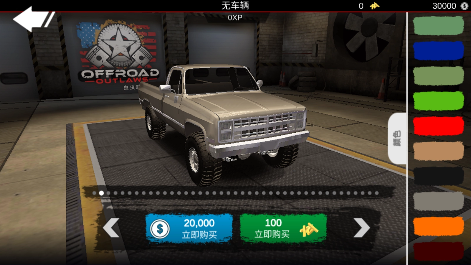 2、点击卡车种类,右侧的【颜色】选项能够更改车子颜色,喜欢哪种颜色就改哪种。