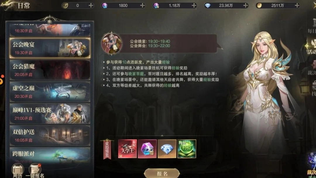 公会举办的晚宴与舞会,堪称社交的理想之地,更是积累经验的宝藏之所!晚宴挂机环节:只需轻松挂机,经验便会源源不断。晚宴答题阶段:大家智慧相互碰撞,排名越靠前,获得的奖励就越发丰厚!共舞时刻来临:邀请同伴一起共舞,彼此等级差距越大,获取的经验也就越多!