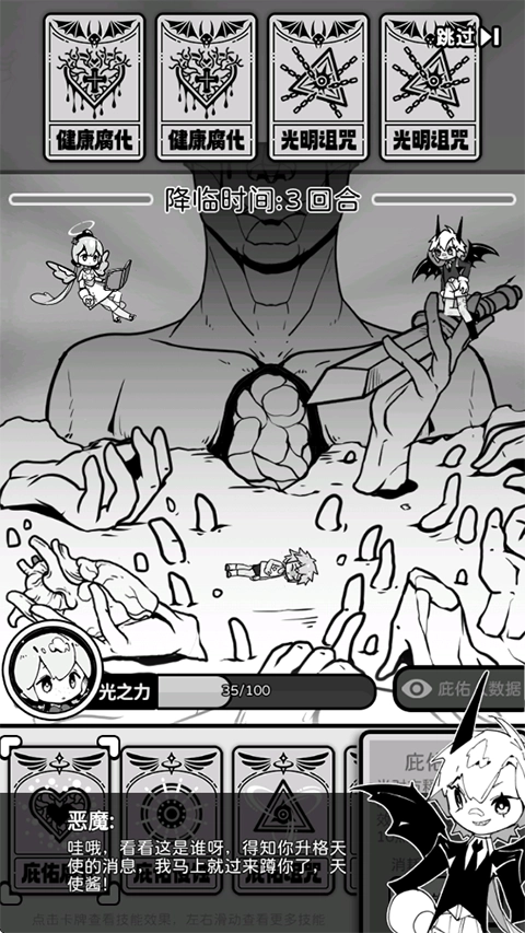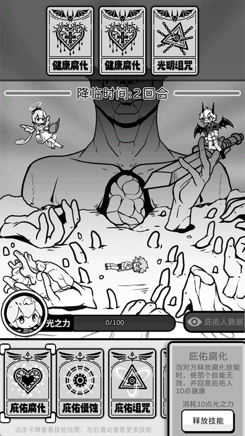 天使模拟器手机版,这是一款新颖的策略模拟卡牌游戏。其画面以黑白动漫画风精心绘制,在游戏里,玩家将化身为刚被分配至天界救赎部的天使。你要做的,是为那些处于轮回中的倒霉短命鬼给予庇护,竭尽全力让他们存活的时间更久一些。