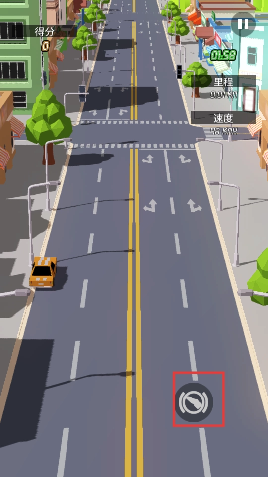 2、操控车辆在道路行驶,留意右下角刹车图标,适时减速避险。