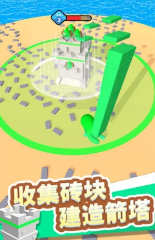 3、迅速收集砖块,搭建你的城堡进行塔防,以此占领全部地盘,让敌人无法靠近。