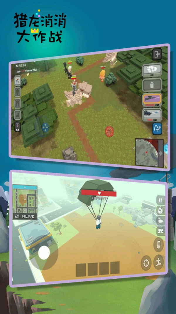 1. 别具一格且萌趣的像素风格吃鸡感受,还有独树一帜的上帝视角玩法。
