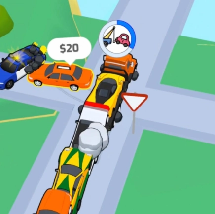 赶紧开上道路,用超酷炫的卡车把所有汽车都拖走。