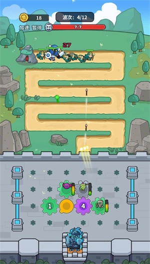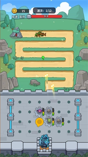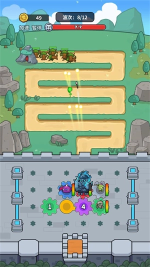 迷你生存游戏融入了齿轮玩法,是一款别具特色的塔防小游戏。在游戏中,玩家要放置魔物齿轮,以此来击退出现的敌人。借助齿轮的转动,驱使魔物发动攻击,成功消灭每一波敌人后,就能获取金币奖励。利用这些金币,可解锁更多齿轮,从而击败更强大的敌人。玩家需持续闯关,消灭全部敌人,守护好自己的城堡。