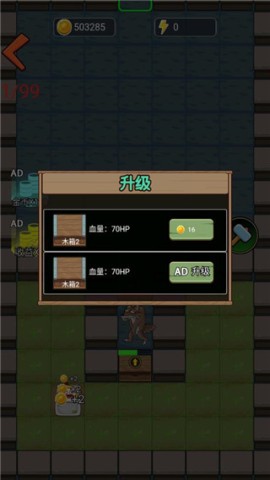 主要的赚钱设施有两类。其一为床,作为基础配置,每秒能够赚取1枚金币,升级之后收益翻倍。其二是矿,这是后期资金的主要来源。其中,铜矿的获取需要8金币,至于银矿,目前还未弄清楚具体情况。不过炮台的威力着实强劲,所以我打算先集中精力对炮台进行升级。