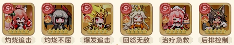 阵容特性:具备群体灼烧效果,对后排能造成高额伤害。