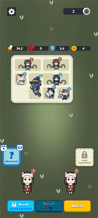 2、每次战斗前,玩家可策略性地挑选自己的猫咪,需维持攻击、防御与治疗这三项数值的平衡。