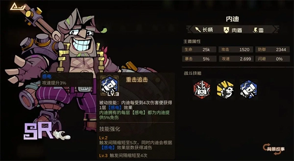 其他内容都已提及,这里着重介绍一下内迪。内迪在雷属性角色中,算是相当出色的肉盾。其二技能自带嘲讽与回血效果,更为关键的是,其被动具备免伤能力。当感电buff叠加至10层时,能获得50%的免伤。在电队里,感电buff很容易就叠满10层,作为前排,能常驻50%的免伤,这一能力相当强劲。不过,内迪存在一个明显缺陷,其被动的免伤效果需角色达到三星才会开启,因此低星状态下无法使用。