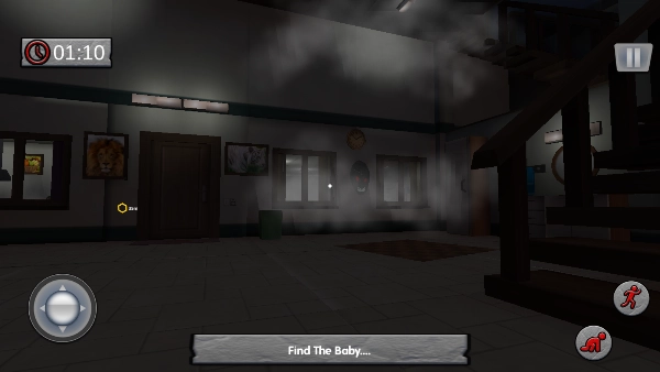 3、游戏开始啦,在这儿你得找到一个身体,也就是find The Body 。右边的小人按钮图标,分别代表蹲下和跳跃动作,左边则是用来控制移动方向的轮盘按键。