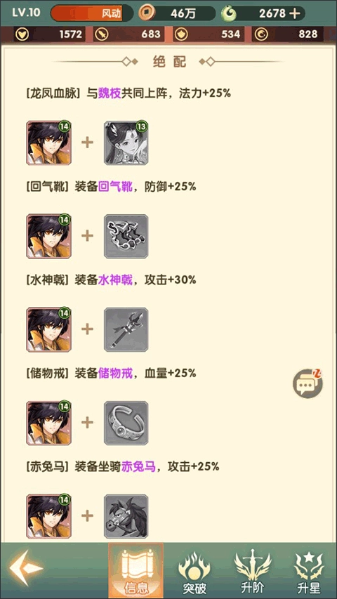 刚进入游戏时,我们得知主角拥有万中无一的神龙血脉,而我们帮助过的魏枝小姐姐拥有凤凰血脉。这种奇妙的羁绊,使他们成为最佳搭档,两人一同上阵就能获得属性加成。不仅如此,角色若配备趁手的武器装备,同样可获得额外属性加成,就像小编配图展示的那样。因此,大家最好依据自身角色的特点来搭配阵容,如此便能达到事半功倍的效果。