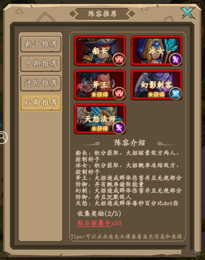 3. 阵容里的成员有:小鹿、夜魔、血魔、双头龙、船长