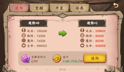 坐骑进阶:提升英雄的攻击力、生命值、物理防御力以及魔法防御力。