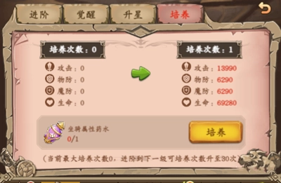 坐骑培育:提升英雄的攻击、生命、物理防御、魔法防御数值