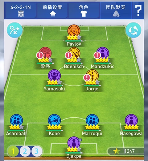 2、已觉醒的球员必须上场。每位觉醒球员都有一定数量的关联球员。关卡难度越高,需要上场的关联球员数量就越多,对球员品质的要求也越高。
