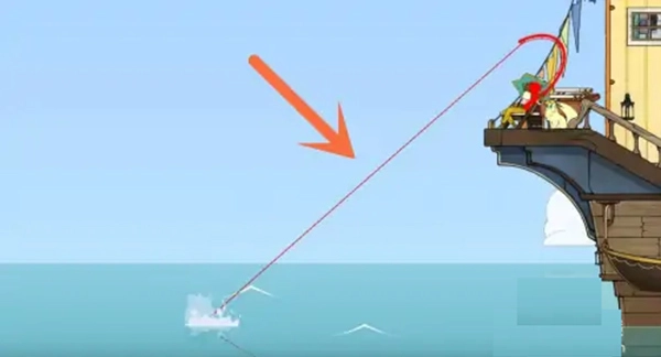 来到这片金枪鱼所在的海域,靠近那张凳子,然后在凳子上坐下。