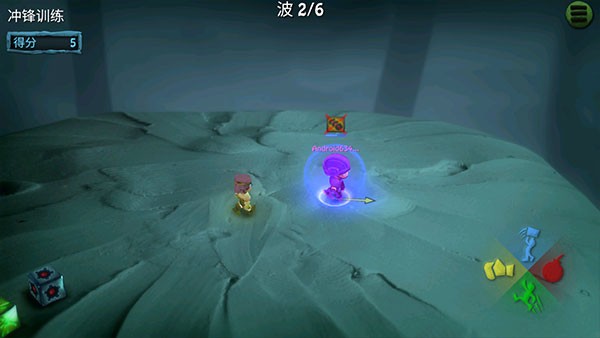 7、完成新手教程后,便会进入练习演练环节。在关卡中,各类盒子将随机掉落,你需要一边收集这些盒子,一边展开战斗。要注意,屏幕左上角显示的是得分。加油,努力战胜你的对手吧!