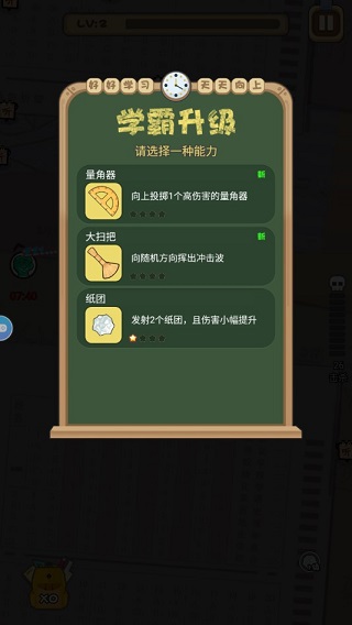 2、捡起地上的小绿点能够获取经验,每次升级时都能挑选不同的能力。