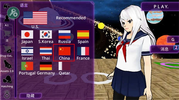 2. 当选择中国时,语言便会自动切换为中文。