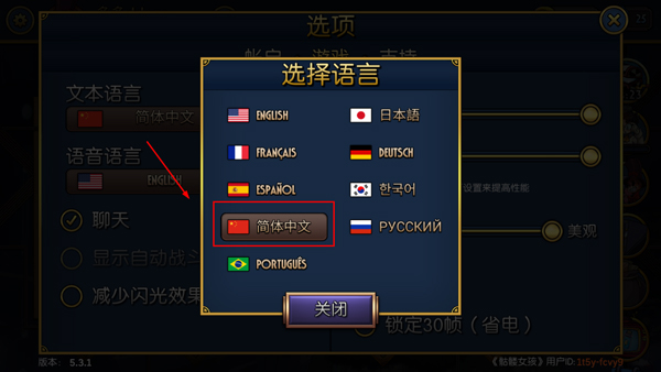 3、最后将语言选择为简体中文,稍作等待,游戏语言便会调整为中文。
