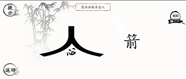 把“箭”字左上角的那一竖,拖拽至“心”字的中心点位置即可。