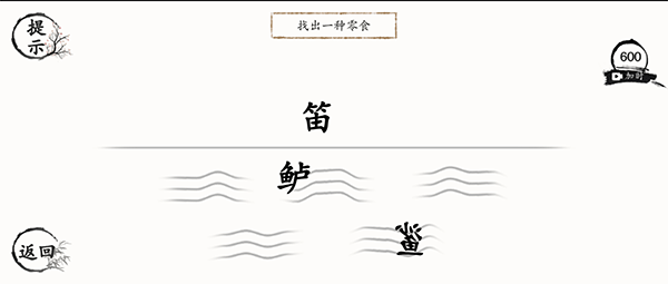1、将“鲈”这个字移至“笛”所在位置,二者组合形成“马”字。